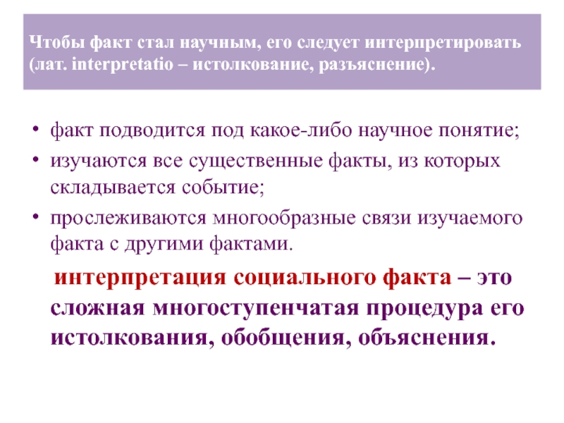Слайд 51Чтобы факт стал научным, его следует интерпретировать (лат. interpretatio –