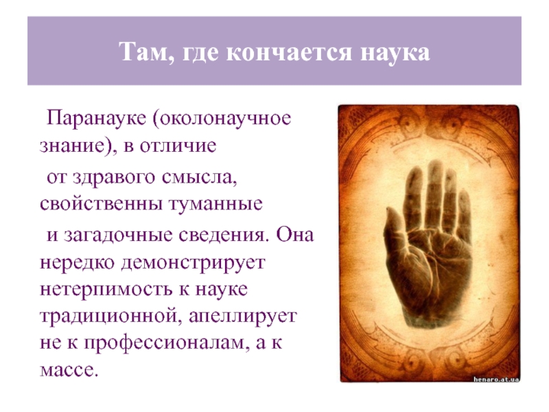 В НАУКЕ ПОМИМО ДОСТОВЕРНОГО ЗНАНИЯ ВСТРЕЧАЮТСЯ РАЗНОВИДНОСТИ