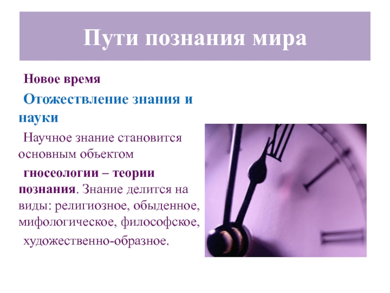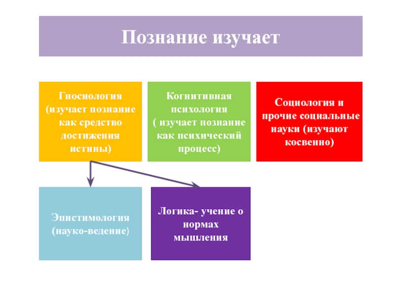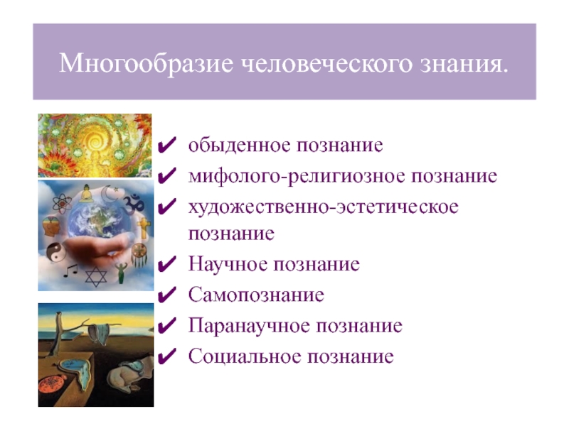 – теории познания. Знание делится на виды: религиозное, обыденное, мифологическое,