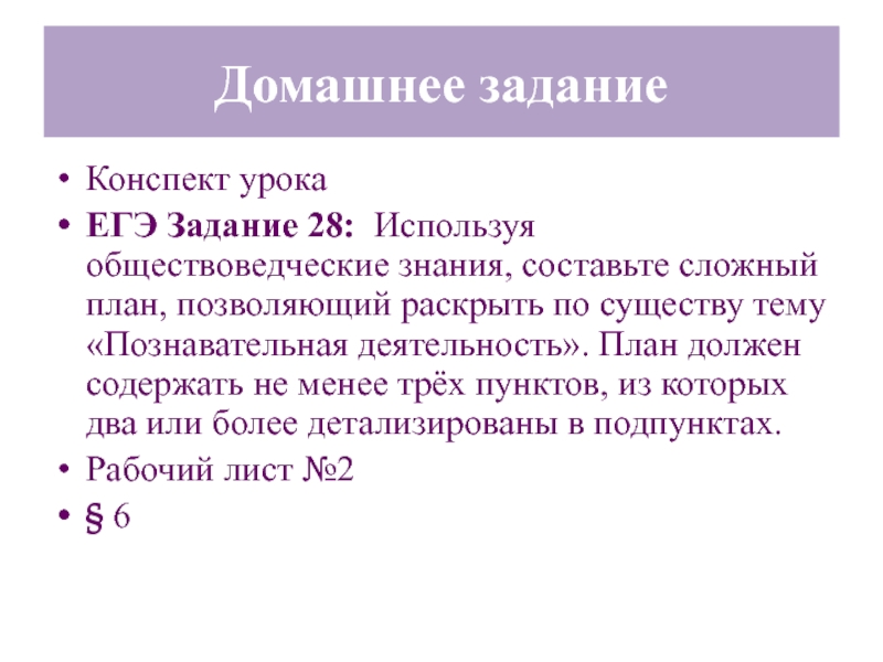план, позволяющий раскрыть по существу тему «Познавательная деятельность». План должен