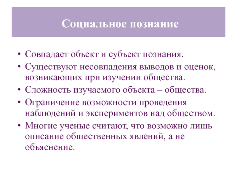 Многие ученые считают, что возможно лишь описание общественных явлений, а не объяснение.