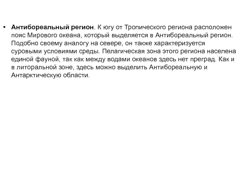 Слайд 22Антибореальный регион. К югу от Тропического региона расположен пояс Мирового
