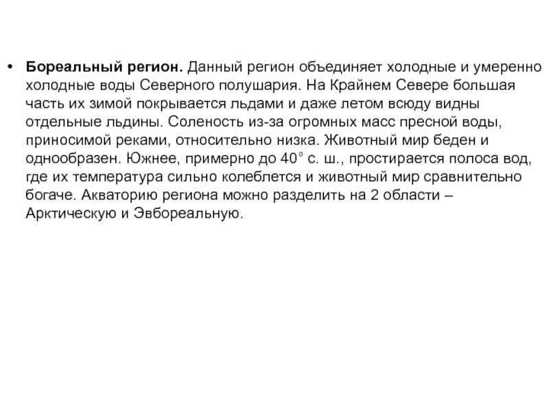 Слайд 19Бореальный регион. Данный регион объединяет холодные и умеренно холодные воды