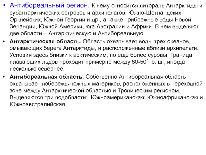 Слайд 12Антибореальный регион. К нему относится литораль Антарктиды и субантарктических островов