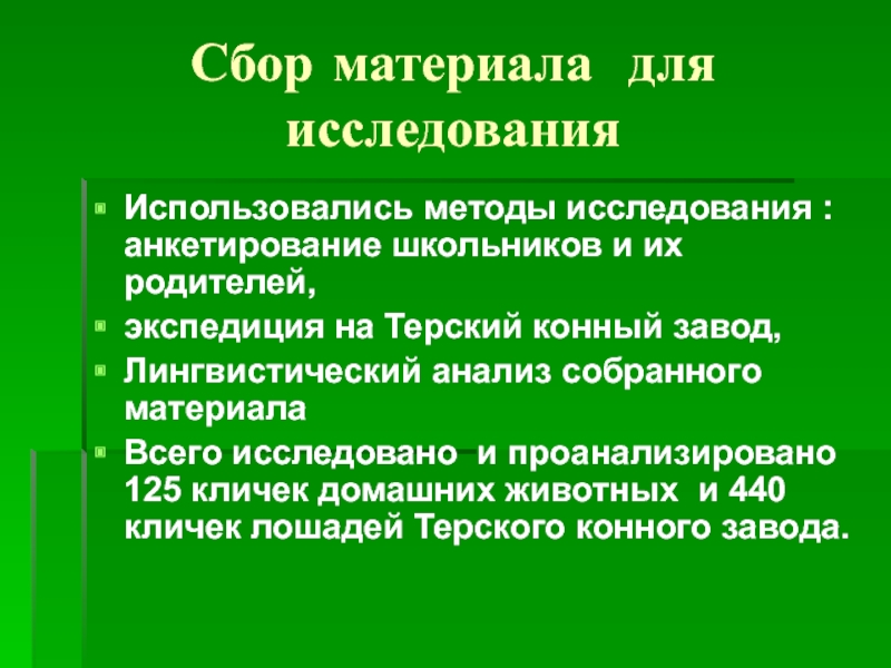 и проанализировано 125 кличек домашних животных и 440 кличек лошадей Терского конного завода.
