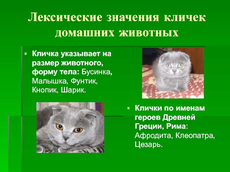 Слайд 9Лексические значения кличек домашних животных