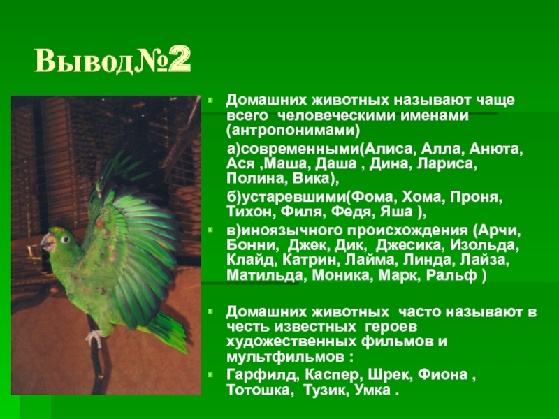 Домашних животных называют чаще всего человеческими именами (антропонимами)