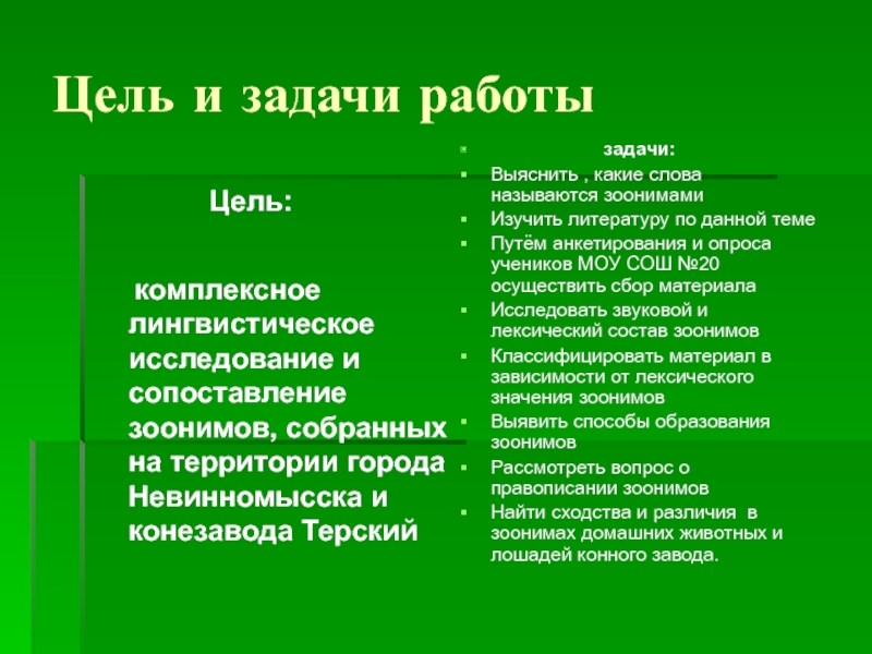 цели - провела комплексное лингвистическое исследование зоонимов.