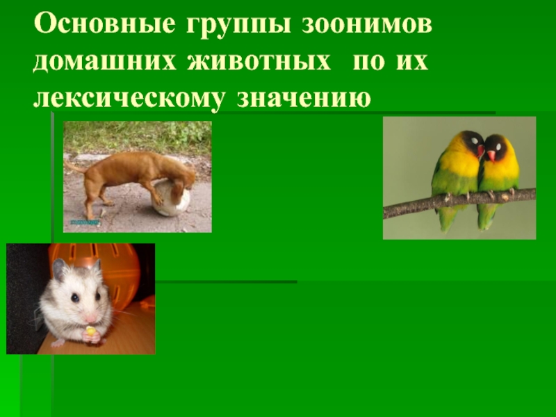 Слайд 7Основные группы зоонимов домашних животных по их лексическому значению