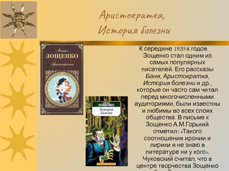 писателей. Его рассказы Баня, Аристократка, История болезни и др., которые