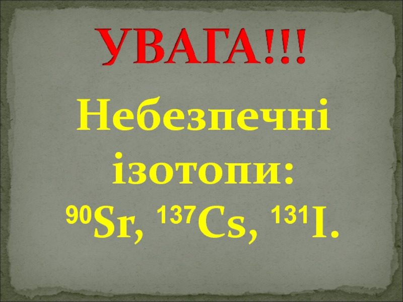 Небезпечні ізотопи:90Sr, 137Cs, 131I.