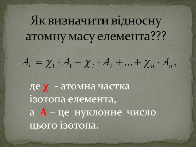 Слайд 9де χ - атомна частка ізотопа елемента,