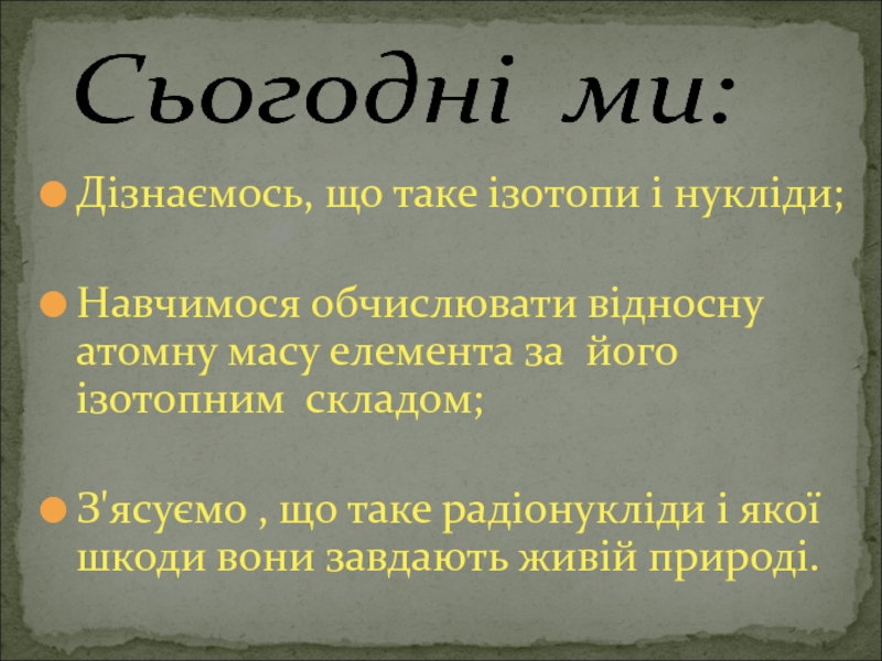 Слайд 2Дізнаємось, що таке ізотопи і нукліди;