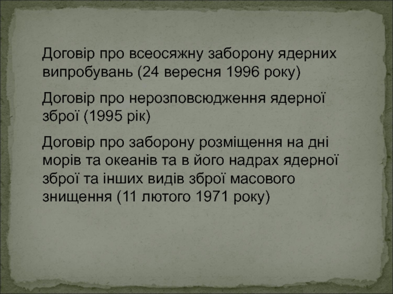 Слайд 25Договір про всеосяжну заборону ядерних випробувань (24 вересня 1996 року)