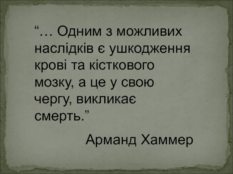 Слайд 23“… Одним з можливих наслідків є ушкодження крові та кісткового