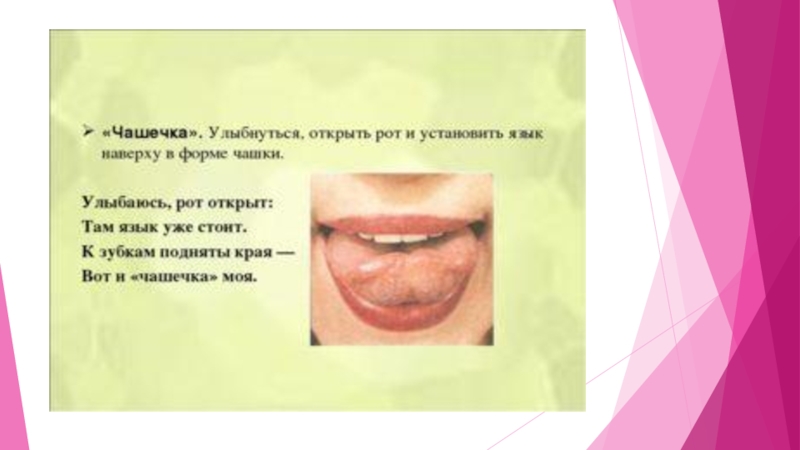 I Сделай «чашку» (боковые края языка прижми к верхней губе, посередине остается желобок).