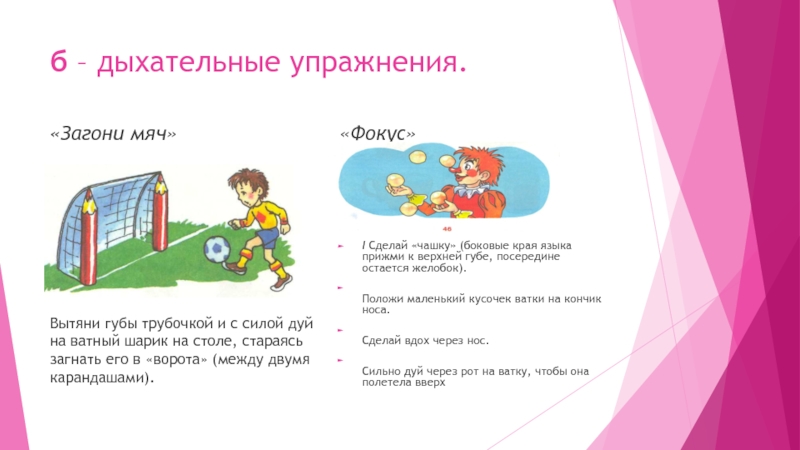 Сильно дуй через рот на ватку, чтобы она полетела вверх