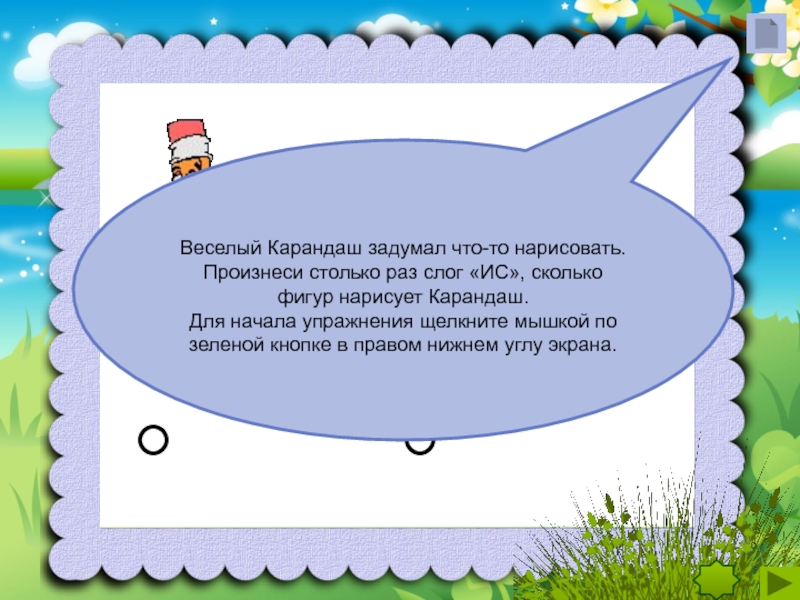 Веселый Карандаш задумал что-то нарисовать. Произнеси столько раз слог «ИС», сколько фигур нарисует Карандаш.Для начала упражнения щелкните