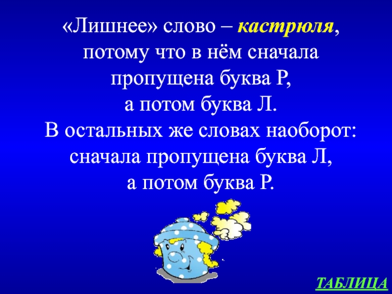 «Лишнее» слово – кастрюля, потому что в нём сначала пропущена